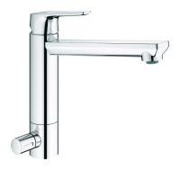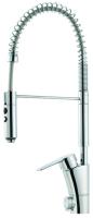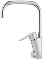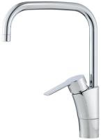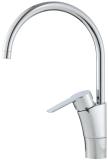 Høy, svingbar tut. 1-hulls. Forkrommet. Innebygd, lett justerbar strømningsbegrensning og temperaturspærre. Høy, svingbar tut. Sperrebrikke følger med for 60°, 85°, 110° eller 360°. Med Soft PEX-rør. Forkrommet.