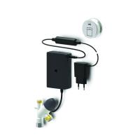 Elektronisk avstengningsventil for oppvask- eller vaskemaskin. Nettstrøm via plug-in transformator (230 V / 5 V).