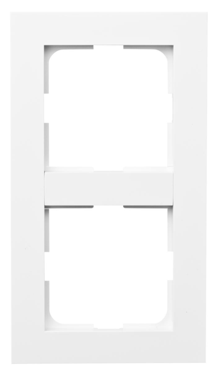Kombinasjonsramme for innfeldt strømbryter, vegguttak etc. Ribben mellom hullene er avtagbar som muliggjør montering av 3-veis vegguttak i 2-hull. Ved montering av strømnbrytere brukes festerammen som medfølger i strømbryteren. Halogenfri termoplast.