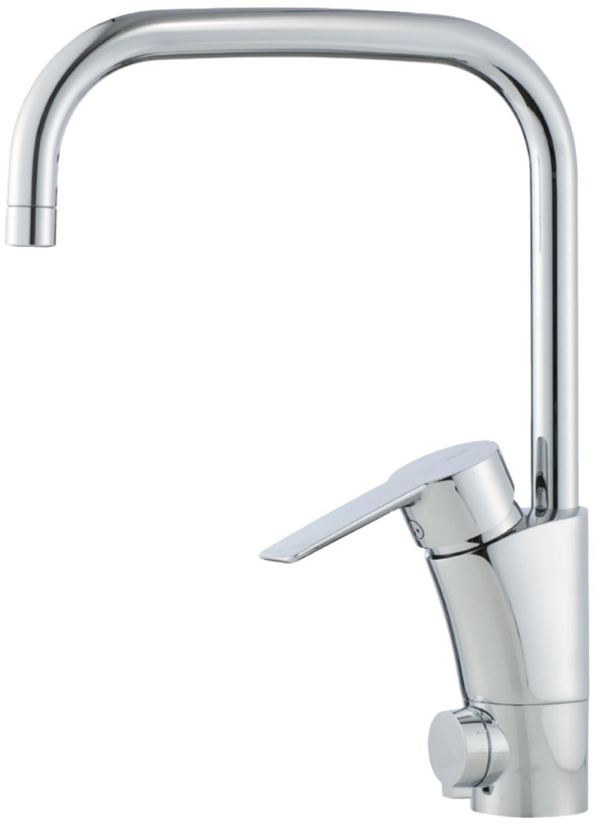 Kjøkkenbatteri ettgreps med L-tut og med oppvaskmaskinavstengning.